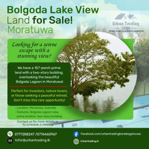 Looking for a serene escape with a stunning view? We have a 157-perch prime land with a two-story building, overlooking the beautiful Bolgoda Lagoon in Moratuwa!
